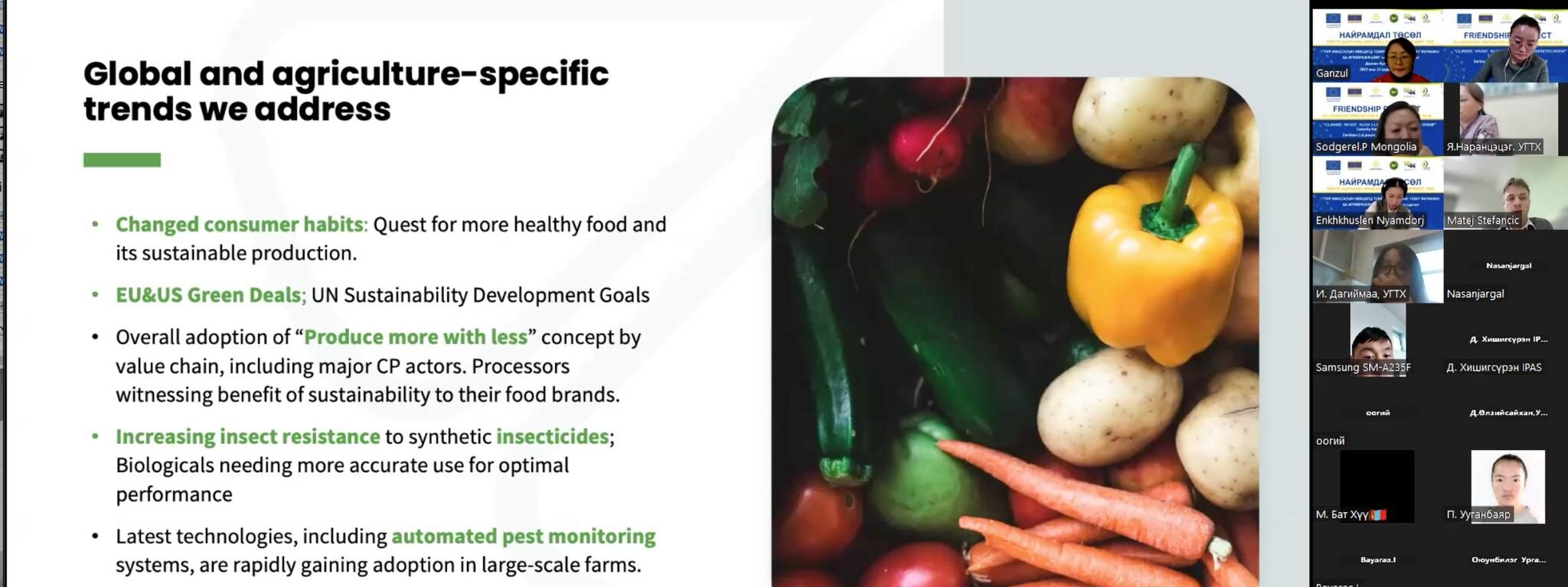 “Уур амьсгалын нөхцөлд тохирсон ухаалаг газар тариалан ба агропренершип” сургалт маань өчигдөр буюу 2022.12.14-нд онлайнаар амжилттай үргэлжиллээ.