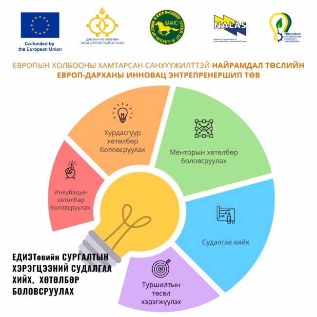 ЕВРОПЫН ХОЛБООНЫ САНХҮҮЖИЛТТЭЙ “НАЙРАМДАЛ” ТӨСЛИЙН ЕВРОП-ДАРХАНЫ ИННОВАЦ ЭНТРЕПРЕНЕРШИП ТӨВИЙН СУРГАЛТЫН ХЭРЭГЦЭЭНИЙ СУДАЛГАА ХИЙХ, ХӨТӨЛБӨР БОЛОВСРУУЛАХ АЖЛЫН ГҮЙЦЭТГЭГЧИЙГ СОНГОН ШАЛГАРУУЛАХ УРИЛГА