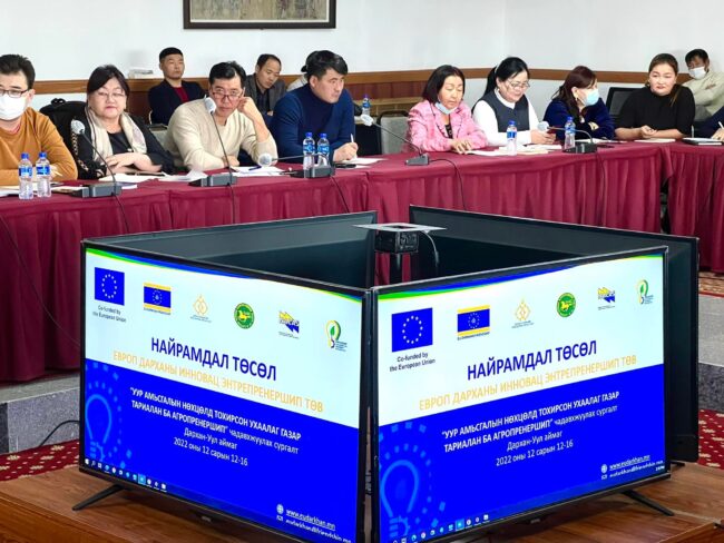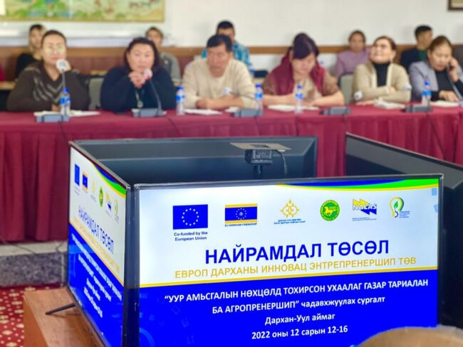 Европын Холбооны санхүүжилттэй НАЙРАМДАЛ төслийн хүрээнд явуулж буй “Уур амьсгалын нөхцөлд тохирсон ухаалаг газар тариалан ба агропренершип” чадавхжуулах сургалтын эхний өдөр Дархан-Уул аймгийн ЗДТГ-ын хурлын танхимд амжилттай зохион байгуулагдлаа. Тус сургалтад ХАА-н салбарын аж ахуйн нэгж, иргэд, мэргэжилтэн, судлаачид зэрэг 80 гаруй оролцогч хамрагдав.Өнөөдрийн сургалтад Хөдөө аж ахуйн шинжлэх ухааны академийн академич, ерөнхий нарийн бичгийн…